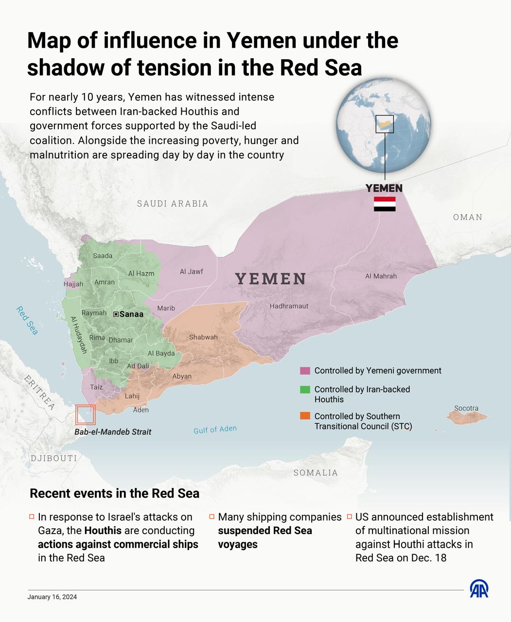 [9] Source: “Yemen’s control map amid Red Sea tensions,” Anadolu Ajansı, January 16, 2024, https://www.aa.com.tr/ar/info/İnfografik/37604.