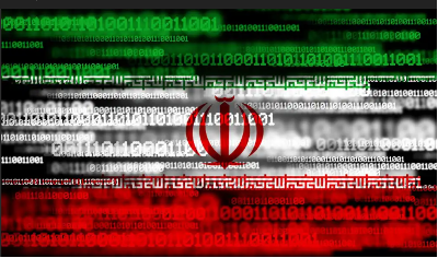 Figure 3: Visual depiction of Iranian online influence operations, combining the Iranian flag with digital code imagery