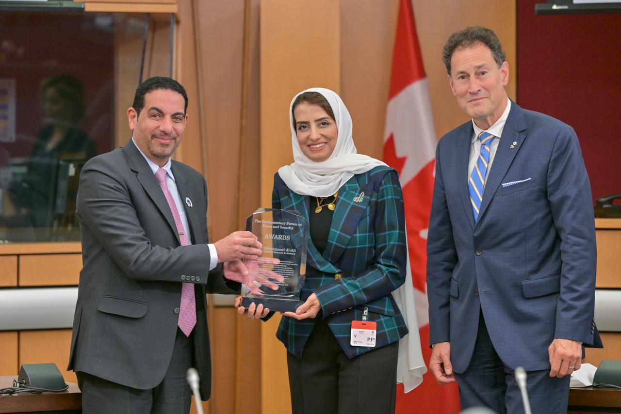 At the conclusion of the forum’s proceedings, and under the dome of the Canadian Parliament in Ottawa, the Parliamentary Forum for Peace and Security presented an honorary award to Dr. Mohammed Al-Ali, CEO of TRENDS Research & Advisory. The award recognized his exceptional leadership in advancing global understanding through research, TRENDS’ vision-driven approach to countering extremism, and his promotion of tolerance and international cooperation.