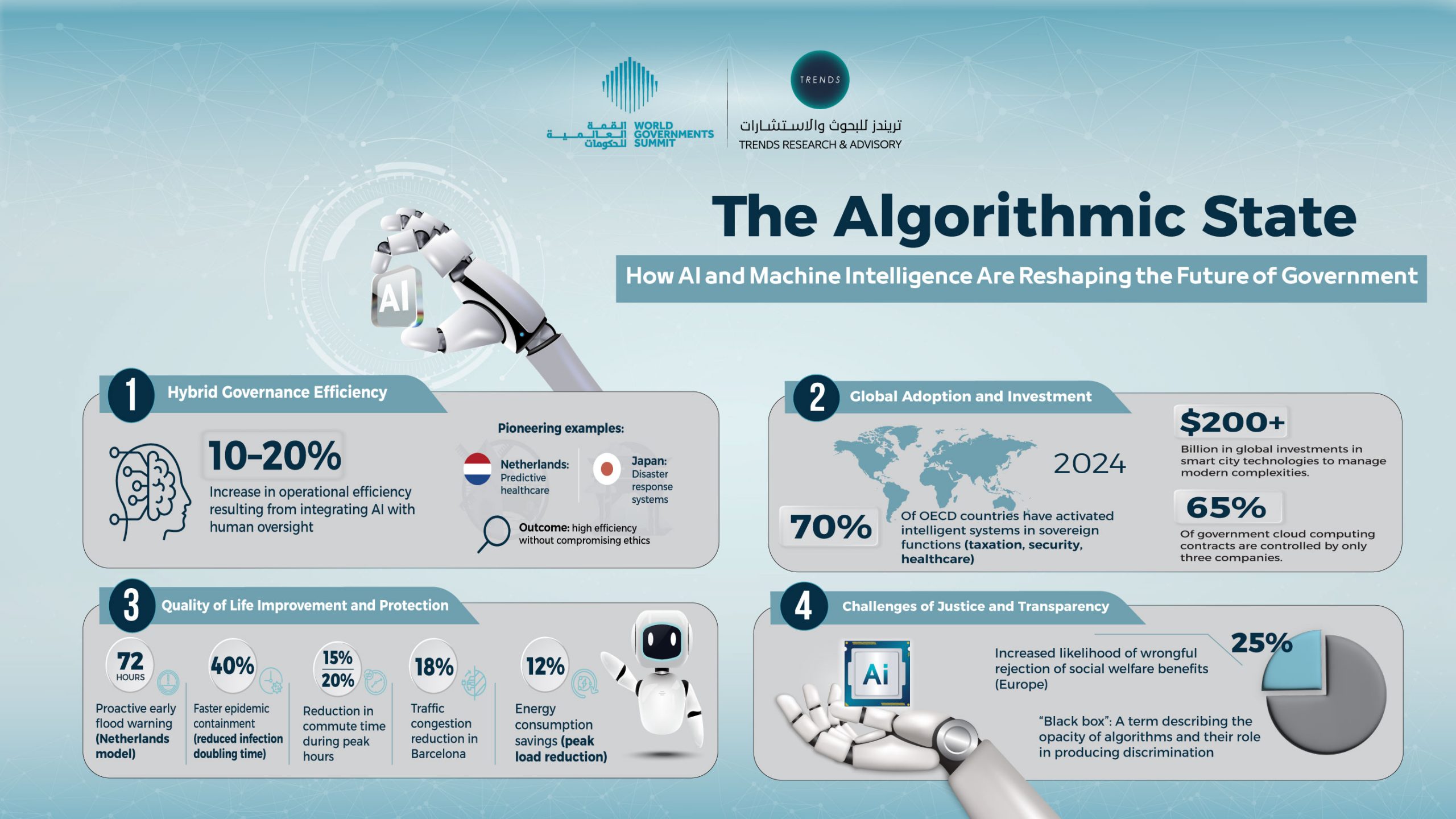 TRENDS Research & Advisory, during its participation in the 2026 World Governments Summit, released an analytical report titled: The Algorithmic State: How AI and Machine Intelligence are Reshaping the Future of Government. The report examines the transformative role of AI and machine-to-machine (M2M) communication systems in modern governance, focusing on their impact on decision-making, institutional structures, and citizen responsibility.